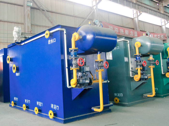 ※气浮设备是一类在水中通入或产生大量的微细气泡,使空气以高度分散的微小气泡形式附着在悬浮物颗粒上,造成密度小于水的状态,利用浮力原理使其浮在水面,从而实现固-液分离的水处理设备。